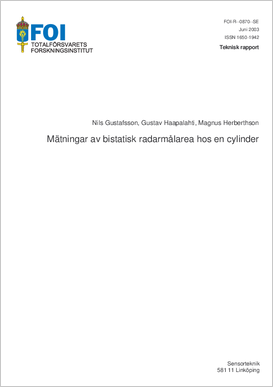 In this report, measurements of bistatic radar cross-section are presented. The measurements have been partly on a metal cylinder and partly on a cylinder equipped with a damping material. The length of the cylinder was 1 m and the diameter 10 cm. The frequencies used were around 10 GHz and the measurements have covered bistatic angles up to 170°.