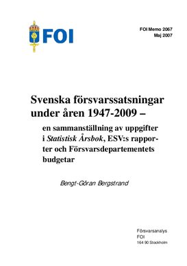 Svenska Försvarssatsningar under åren 1947-2009 - en sammanställning av uppgifter i Statistisk Årsbok, ESV:s rapporter och Försvarsdepartementets budgetar