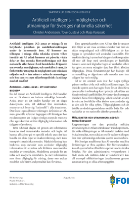 Artificiell intelligens – möjligheter och utmaningar för Sveriges nationella säkerhet