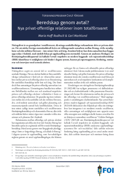 Beredskap genom avtal? Nya privat-offentliga relationer inom totalförsvaret