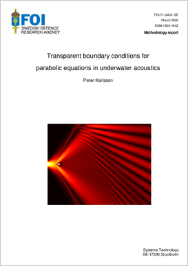 I denna rapport behandlas skapandet av diskreta transparenta randvillkor för paraboliska ekvationer inom undervattensakustik. De diskreta randvillkoren är framtagna genom att analytiskt lösa de paraboliska ekvationerna för en halv-oändlig homogen botten. Dessa nya randvillkor har jämförts med användandet av en "falsk botten", vilket hittills varit det vanligaste sättet att trunkera en oändlig botten. Tre testexempel användes vid utvärderingen: Lloyd Mirror, bucker wave-guide och Jensen-Kuperman wedge. för den "falska botten" använde vi tre olika dämpningsprofiler, två linjära samt en ickelinjär. De diskreta randvillkoren visade sig vara mycket mer tidseffektiva och korrekta än den "falska botten". På framsidan ges ett första exempel på funktionaliteten hos de diskreta randvillkoren, vilken visar hur en stråle sprids med hjälp av ett kilformat prisma. Som synes i figuren reflekteras den del av strålen som träffar ytan medan den nedre gränsen är transparent.