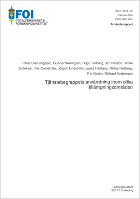 Tjänstebegreppet används idag med en rad olika betydelser beroende på tillämpningsområde. Detta gäller både inom och utanför Försvarsmakten. FOI fick därför hösten 2003 i uppdrag av FMV att inom ramen för LedsystT genomföra en studie över hur tjänstebegreppet används inom olika tillämpningsområden. Syftet med studien var att på bredden beskriva hur tjänstebegreppet används i olika civila och militära sammanhang/tillämpningar. Målet var att denna beskrivning skall bidra till att skapa en bättre förståelse för hur tjänstebegreppet används i totalförsvaret. Studiearbetet bedrevs av en grupp med bred kompetens och som undersökte tjänstebegreppets tillämpning både inom och utanför Försvarsmakten. Resultaten lägesredovisades dels vid ett halvtidsseminarium med beställaren, dels via två slutseminarier; ett på FMV samt ett på HKV/KRI/LED/UTV. Den övergripande slutsatsen är att tjänstebegreppet används frekvent, i varierande betydelse, dock utan att alltid vara explicit definierat. Inom Försvarsmaktens organisationsenheter undviker man nya tillämpningar av tjänstebegreppet och använder istället begrepp som "funktion" och "förmåga". Eftersom det flexibla insatsförsvaret skall byggas med användning av kommersiellt tillgänglig teknik är det viktigt att det tjänstekoncept som väljs går att koppla till de koncept som kommersiella leverantörer/aktörer använder. Det är därför viktigt att under den fortsatta försöksverksamheten inom Ledsystarbetet identifiera dessa "kommersiella" gränsytor.