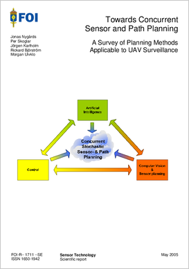 Autonom rutt- och sensorplanering av en UAV med EO/IR-sensorer för spaning och övervakning är ett mycket utmanande problem. Realistiska modeller av omvärld, sensorer och plattform är komplexa p.g.a. icke-linjära och stokastiska beskaffenheter hos vår värld. Följaktligen blir algoritmer och metoder som löser realistiska planeringsproblem väldigt beräkningskrävande. Att utveckla en enda monolitisk planerare är förmodligen en omöjlig uppgift, istället är en hierarkisk uppdelning nödvändig. En viktig fråga är dock hur denna uppdelning i mindre delproblem görs så att det övergripande målet ändå uppnås. Syftet med denna litteraturstudie är att presentera metoder och angreppssätt användbara för spaning och övervakning med UAV:er; i synnerhet metoder för samtidig rutt- och sensorplanering. Först introduceras problemet med spaning och övervakning med autonoma UAV:er. Sedan ges en översikt över olika forskningsområden¨relaterade till rutt- och/eller sensorplanering. Rapportens huvuddelar presenterar metoder och angreppssätt för ruttplanering och sensorplanering. Dessutom ges en kortfattad genomgång av relaterad forskning i Sverige. Problemet med samtidig rutt- och sensorplanering är mycket komplext och ingen metod har hittats som på ett tillfredställande sätt löser det. Det finns dock några angreppssätt och inriktningar som verkar lovande. Eftersom det pågår forskning relaterat till det aktuella problemet på flertalet platser i världen, kan man förvänta sig att intressanta resultat kommer fram inom de närmaste åren.