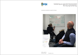 Rapporten beskriver metod och resultat från en studie syftande till att validera ett beslutsstöd (metod) för resursprioritering som utformas av Myndigheten för samhällsskydd och beredskap (MSB). Beslutsstödet är tänkt att hjälpa beslutsfattare att förstå en tidskritisk situation för att komma fram till hur tillgängliga resurser bör användas. Det ska kunna användas över hela hotskalan och sida vid sida med andra metoder. Beslutsstödet består av fem processteg som kan bearbetas till olika djup. FOI:s validering baserades på ett utkast av beslutsstödet och syftade till att identifiera förbättringsbehov för de olika processtegen. Valideringen utgick från beslutsstödets målsättningar och genomfördes med fem grupper med totalt 22 användare inom beslutsstödets tänkta målgrupp. Användarna representerade länsstyrelse, kommun, räddningstjänst, region och polismyndighet. Valideringstillfällena inleddes med en utbildning på beslutsstödet följt av ett scenariobaserat beslutsspel och en avslutande gruppdiskussion. Datainsamlingen bestod av bakgrunds- och efterenkät, observationer och dokumentation under beslutsspelet samt anteckningar under gruppdiskussionen. Gruppernas synpunkter var till övervägande del samstämmiga. Ett aktörsgemensamt beslutsstöd kan utgöra vägledning i arbetet. Beslutsstödet hjälpte till att föra in olika perspektiv i beslutsprocessen som annars lätt kan glömmas bort och skapade därmed en förutsättning för väl avvägda beslut. Det blir tydligt och spårbart vad som leder fram till beslutet. Valideringens identifierade förbättringsbehov handlade i stor utsträckning om ökad enkelhet och tydlighet avseende beslutsstödets utformning. Metoden är skalbar men behöver ändå förtydligas och förenklas. En dokumentationsmall, med tydliga rubriker, skulle ge både förutsättningar för ökad spårbarhet och förståelse för vad som ska uppnås i de olika stegen. Deltagarna i studien upplevde att terminologin ytterligare behöver ensas med skriften Gemensamma grunder och stabsmetodik. Därutöver behöver logiken mellan de olika processtegen och delfrågorna ses över eftersom visst innehåll i dagsläget upplevs komma i fel ordning.