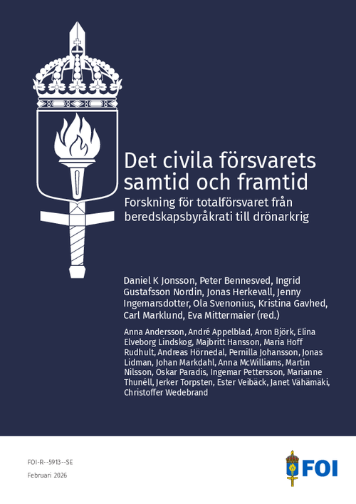Det civila försvaret utgör samhällets samlade motståndskraft vid krig och krigsfara. Det civila försvaret ska skydda befolkningen, upprätthålla samhällsfunktioner och försörjningsflöden, stärka försvarsviljan samt stödja det militära försvaret. Antologin Det civila försvarets samtid och framtid är framtagen inom FOI:s Forskningsprogram civilt försvar, som bedriver verksamhet inom följande områden: Befolkningsskydd, Försörjningsberedskap och ekonomiskt försvar, Psykologiskt försvar och försvarsvilja, Samhällets funktionalitet under höjd beredskap och krig, Civilt försvar som sammanhängande system, och Civilt stöd till militärt försvar och civil-militär samverkan. Rapporten består av följande kapitel: 1. Inledning - forskning för det civila försvarets behov 2. Styrningen av det civila försvaret - mot handlingskraft eller en ineffektiv byråkrati? 3. Branscher i beredskap - en framtida modell över branschers förutsättningar för beredskap 4. Den blå försörjningsberedskapen 5. Krigsförsäkringar - en förutsättning för Sveriges varuförsörjning 6. Befolkningsskyddets förutsättningar i krigets Ukraina - från luftkrig till skyddsrum 7. Svärmtekniken och skyddet av civilbefolkningen i väpnade konflikter 8. Planering för flexibilitet kring frivilliga insatser - möjliga lärdomar från Ukraina 9. Samhällets förmåga att omhänderta ett stort antal döda i krig - en ny processbeskrivning 10. Konstens roll i krig 11. Hörnsten och hägring - försvarsviljans dynamik i krig och fred 12. Beredskap genom avtal? Nya privat-offentliga relationer inom totalförsvaret 13. Rådighet - att sätta handling bakom ett av totalförsvarets viktigaste ord.