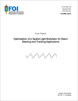 Ljusmodulatorer (SLM:er) baserade på vätskekristallteknik är komponenter där brytningsindex och fasen hos reflekterat ljus kan varieras i varje pixel över en yta med ett elektriskt fält. Genom att använda ett sågtandsformat mönster som beskriver förändringar hos brytningsindex vilket motsvarar ett linjärt fasskift kan riktningen hos en reflekterad laserstråle ändras. Riktningen kan bestämmas noggrant men diffraktionseffekter medför att ljus kommer att spridas i oönskade riktningar. Den här studien beskriver hur optiska egenskaper hos SLM:er kan karakteriseras för strålstyrningstillämpningar och utvecklande av en modell för att beskriva prestanda. Fyra metoder som kompenserar för oönskade diffraktionseffekter presenteras, samt två metoder som kan användas för att förbättra tidsresponsen. Med hjälp av de utvecklade metoderna kan laserstrålar styras inom vinkelområdet +- 2° och tidsresponsen reduceras till hälften. Målföljningsalgoritmer har utvecklats och utvärderats i en laboratorieuppställning.