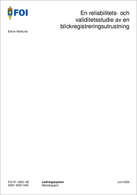 Arbetets syfte var att utreda reliabilitet och validitet för en blickregistreringsutrustning, JAZZT från Ober Consulting, Polen, som finns på FOI i Linköping. Dessutom skulle utredningen klargöra huruvida JAZZT kan användas till att detektera mental arbetsbelastning. Tre olika studier gjordes på 17 försökspersoner. Endast sackader i horisontalled studerades, trots att utrustningen har ett flertal andra mätområden. Första studien utredde utrustningens reliabilitet och validitet, den andra och tredje studien studerade mental arbetsbelastning. Samtliga studier var kontrollerade experiment och uppbyggda som test-retest, ingen kontrollgrupp användes utan varje försökspersons resultat jämfördes med sina egna övriga resultat. Även subjektiva bedömningar togs med i utredningen då försökspersonerna fick svara på en enkät efter varje genomfört försök. Frågorna behandlade dels utrustningens komfort, dels upplevelsen av mental arbetsbelastning. Statistiska resultat togs fram med ANOVA Upprepad Mätning i Statistica. Resultaten visade bland annat signifikanta skillnader mellan de olika studierna och inga signifikanta skillnader mellan de inbördes försöken, vilket indikerar att JAZZT-utrustningen är reliabel och valid. Tillsammans med de subjektiva bedömningarna kan det också påvisas att utrustningen kan detektera mental arbetsbelastning. Rekommendation för fortsatt arbete är att studera JAZZT-utrustningens övriga mätområden. samt att testa utrustningen i verklig miljö, då samtliga studier i rapporten gjorts i lab-miljö.