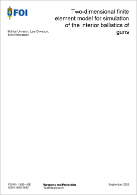 En modell för innerballistiska simuleringar av kanoner föreslås och implementeras i en tvådimensionell explicit finita elementkod. Modellen tillämpas på en 40 mm kaliber kanon med tillfredställande resultat.