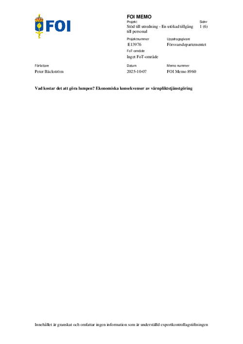 Vad kostar det att göra lumpen? Ekonomiska konsekvenser av värnpliktstjänstgöring