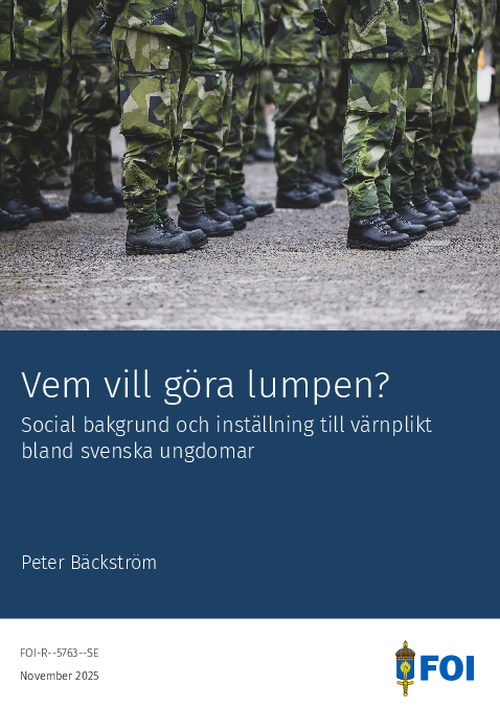 Trots ett ökat intresse för frågor om försvarets folkförankring och befolkningens försvarsvilja, finns det inga studier om hur viljan att tjänstgöra i Försvarsmakten skiljer sig mellan olika sociala grupper. Denna rapport syftar till att fylla denna kunskapslucka genom att undersöka vilken betydelse social bakgrund har för svenska ungdomars inställning till att göra värnplikt. Analysen bygger på en kombination av enkät- och registerdata. Enkätmaterialet kommer från det mönstringsunderlag som alla 18-åringar i Sverige är skyldiga att fylla i och där de bland annat anger sin inställning att göra till grundutbildning med värnplikt. Dessa uppgifter länkades till registerdata från Statistiska centralbyrån om föräldrarnas socioekonomiska status och individens migrationsbakgrund. Totalt omfattar datamaterialet omkring 500 000 totalförsvarspliktiga ungdomar födda mellan åren 2000 och 2004. Resultaten visar att ungdomarnas socioekonomiska bakgrund har en begränsad betydelse för deras inställning till värnplikt. Ungdomar vars föräldrar har högre utbildning och höga inkomster är något mer positiva, men skillnaderna är små. Däremot spelar migrationsbakgrund större roll. Ungdomar födda i Sverige med utlandsfödda föräldrar är mer tveksamma till värnplikt, både jämfört med ungdomar med svenskfödda föräldrar och ungdomar som själva är utlandsfödda. Detta kan inte förklaras av socioekonomiska skillnader mellan grupperna. Framtida forskning bör försöka fördjupa förståelsen av detta fenomen.