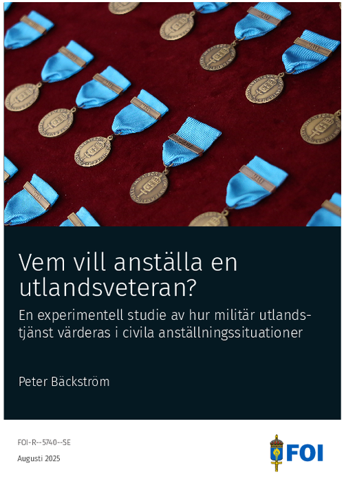 Syftet med denna studie är att studera hur svenska utlandsveteraner behandlas i civila anställningssituationer. Ökar eller minskar sannolikheten för att en person blir kallad till arbetsintervju om denne har tjänstgjort militärt utomlands? Spelar det någon roll vem personen möter i rekryteringsprocessen? Finns det skillnader mellan olika yrkesområden? För att svara på dessa frågor genomfördes ett hypotetiskt valexperiment - en metod där man studerar människors preferenser genom att upprepade gånger låta dem välja mellan två eller flera alternativ med olika egenskaper. I experimentet fick omkring 1 000 enkätrespondenter först läsa en beskrivning av en fiktiv rekryteringsprocess. De fick sedan i uppgift att upprepade gånger välja mellan två hypotetiska arbetssökande, varav vissa beskrevs som militära utlandsveteraner, att bjuda in till arbetsintervju. Resultatet visar att militär utlandstjänstgöring både kan vara en fördel och en nackdel för den som söker ett civilt jobb, beroende på vilket slags arbete det rör sig om och vem man möter i rekryteringsprocessen. Kvinnor och personer inom yrkesområden där mellanmänsklig interaktion är ett centralt inslag tenderar att välja bort militära utlandsveteraner. Män och personer med egen erfarenhet av utlandsveteraner samt chefer med personalansvar tenderar däremot att föredra militära utlandsveteraner.