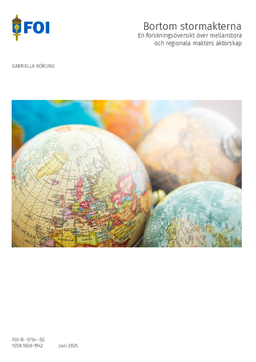 Den här rapporten blickar bortom stormakterna för att fokusera på mellanstora och regionala makter. Mellanstora och regionala makter kvalificerar sig inte som stormakter men deras storlek, ekonomiska vikt och politiska inflytande på global eller regional nivå gör att de antas särskilja sig från andra mindre stater. Intresset för mellanstora och regionala makter och för deras aktörskap har ökat i och med förändringar i omvärlden som till exempel växande stormaktsrivalitet, framväxten av nya ekonomiskt starka makter utanför väst och en ökad multipolaritet. Denna forskningsöversikt syftar till ge en fördjupad förståelse för begreppen mellanstor makt och regional makt. Rapporten sätter begreppen i ett historiskt perspektiv, problematiserar mellanstora och regionala makters ställning i internationella makthierarkier och redogör för centrala teoretiska diskussioner som har bidragit till att forma förståelsen för mellanstora och regionala makter. Avslutningsvis förs en mer framåtblickande diskussion om mellanstora och regionala makters position och inflytande i ett läge där den globala maktbalansen återigen håller på att skifta.