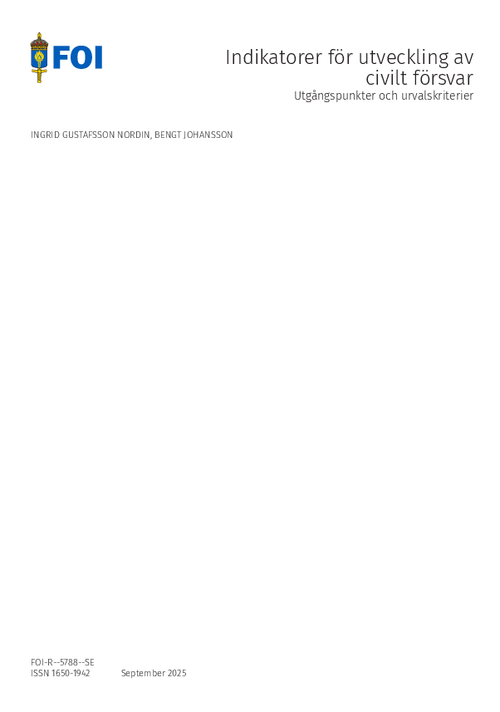 I denna rapport beskrivs möjliga utgångspunkter och angreppssätt för att ta fram indikatorer som speglar utvecklingen av det civila försvaret. I studien är utgångspunkten att indikatorerna lämpligen kopplas till de av riksdagen beslutade målen för civilt försvar. De ska dessutom helst spegla de olika förmågor som behövs för att målen ska kunna uppnås. I rapporten presenteras även tolv indikatorer som skulle kunna användas för att spegla hur viktiga aspekter av det civila försvaret utvecklas. Ett sådant begränsat urval kan inte vara heltäckande men kan ändå ge en viss överblick över nuläget och den pågående utvecklingen. De tolv indikatorerna speglar följande områden: samhällsviktig verksamhet, försörjningssystem, samverkan, krigsorganisation, bidrag till det militära försvarets förmåga, uppfyllande av internationella krav, befolkningsskydd, sjukvård, desinformation och kriskommunikation, försvarsvilja, egenberedskap samt uthållighet och omställningsförmåga. De flesta av dessa indikatorer är tänkta att kunna användas för samtliga beredskapssektorer. I rapporten diskuteras även kriterier vid framtagande av sektorsspecifika indikatorer. Indikatorer kan vara användbara för att följa upp policyutvecklingen. Samtidigt kan införandet även vara förenat med risker för oönskade styreffekter. Ytterligare rapporteringskrav kan dessutom vara resurskrävande.